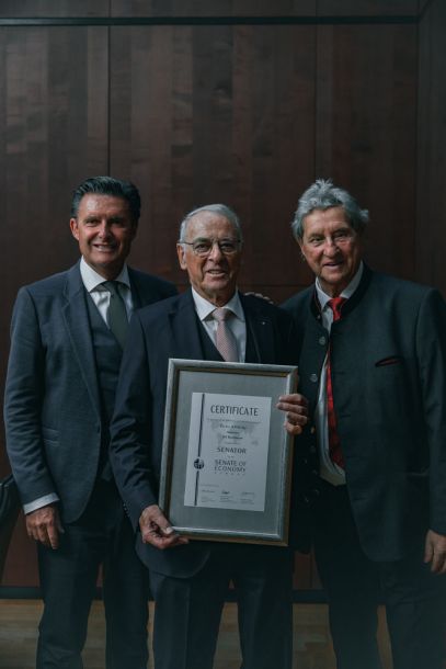 Erfolgreiche Zertifizierung von 15 neuen Senatoren für den Senat Schweiz am 25. September 2025 im Bundeshaus in Bern. Erstmals hat der Vorstand ein Ehrenmitglied ernannt: Alt Bundespräsident Dr. h.c Adolf Ogi.