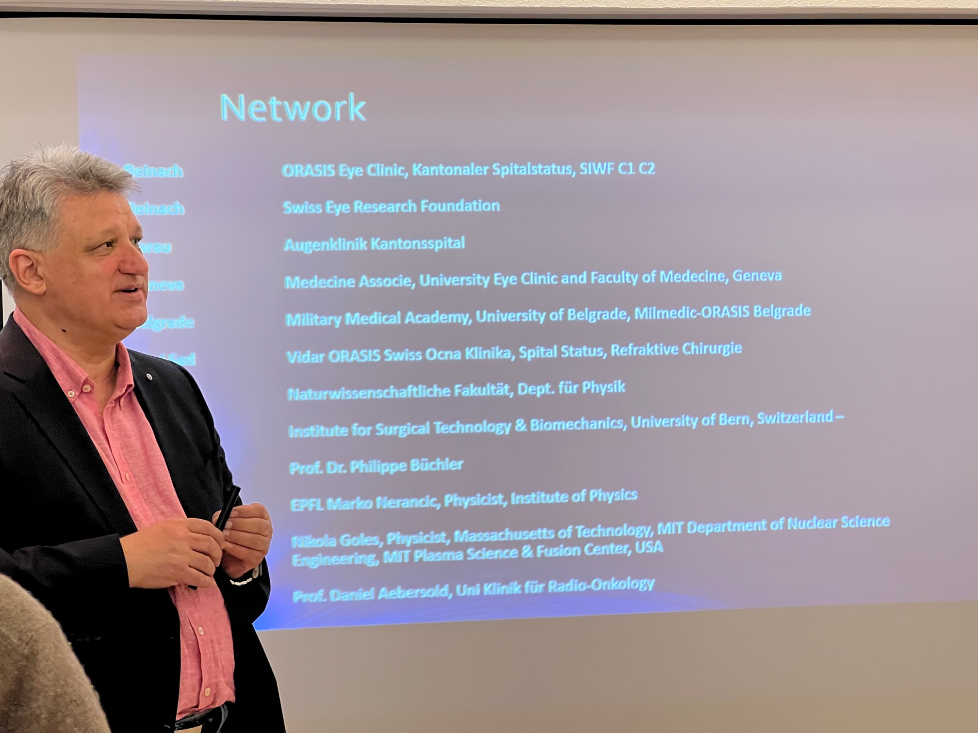Das Netzwerk von Prof. Dr. Bojan Pajic ist sehr eindrücklich so operiert er neben Novi Sad, Reinach auch am Universitätsspital in Genf. Die Teilnehmer haben durch die Besichtigung und den Ausführungen des Professors einen sehr persönlichen oder auch vertieften Eindruck erhalten und der Senat Schweiz bedankt sich bei seinem Vorstandsmitglied für diesen exklusiven Einblick in seine Augenklinik in Reinach.